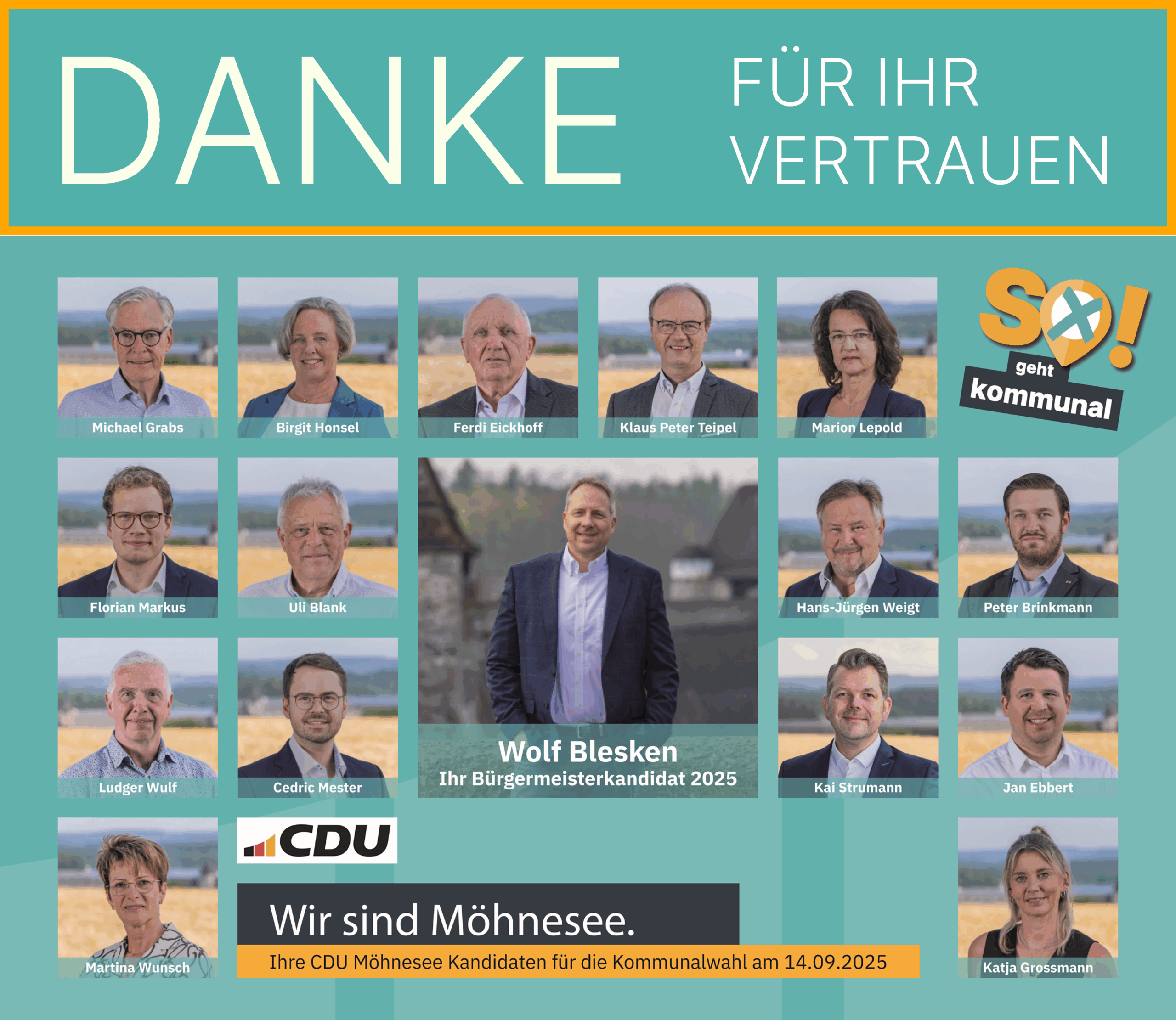 Ralf weiß, worauf es ankommt: Projekte dürfen nicht im Sande verlaufen. Mit Wolf Blesken bekäme Möhnesee einen Bürgermeister, der zuhört, Verantwortung übernimmt und die Dinge konsequent zu Ende bringt.